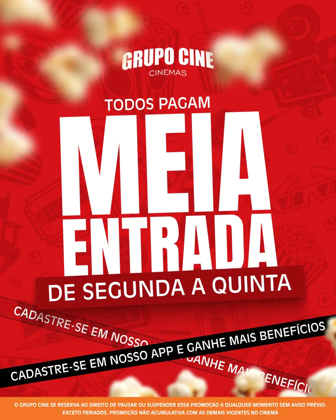 DE SEGUNDA A QUINTA, TODOS PAGAM MEIA ENTRADA.